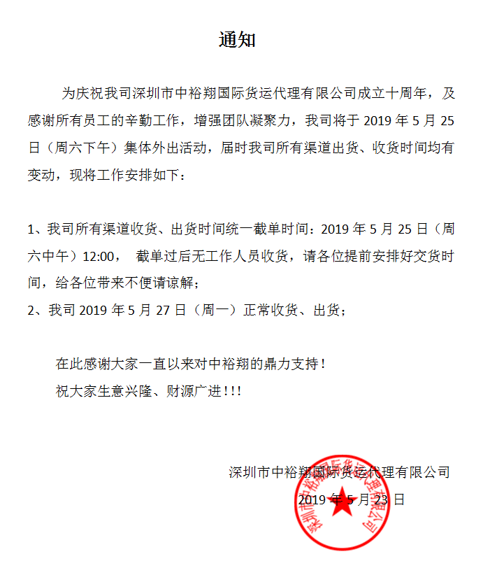 2019年“五一”劳动节放假通知