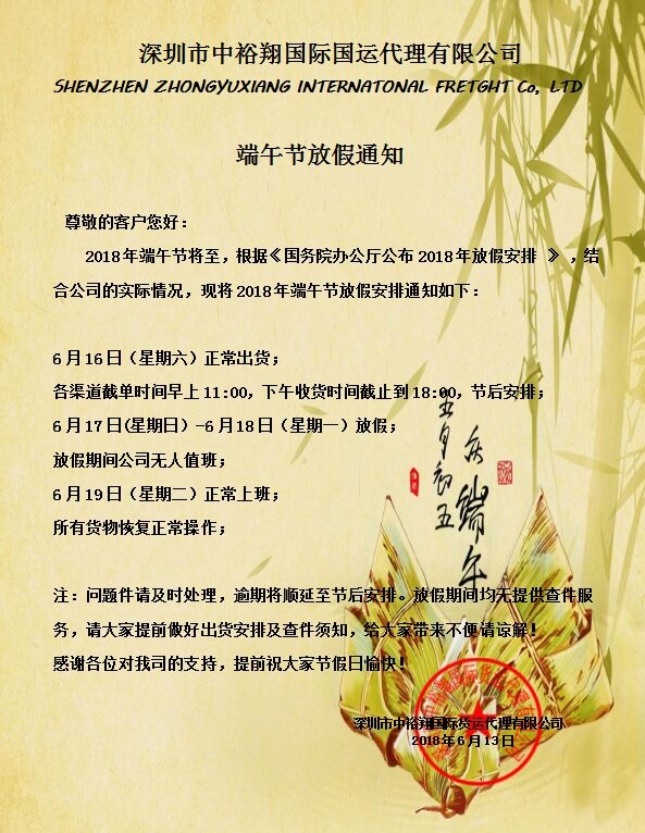 2018年端午节放假通知